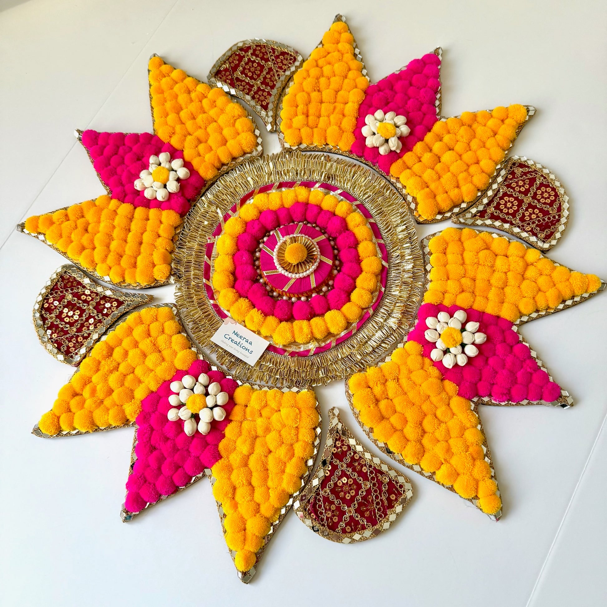 This handcrafted decorative rangoli is ideal for enhancing festive home décor, especially during Diwali and other celebrations